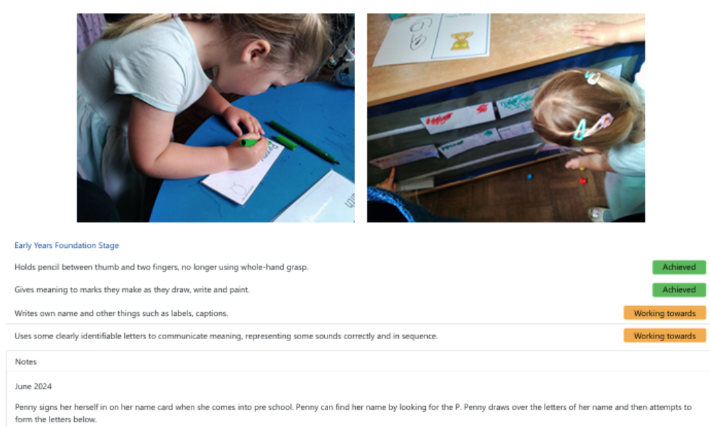 - Online learning journals where Parents/Carers can add observations and photos